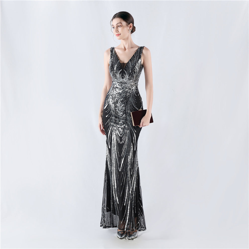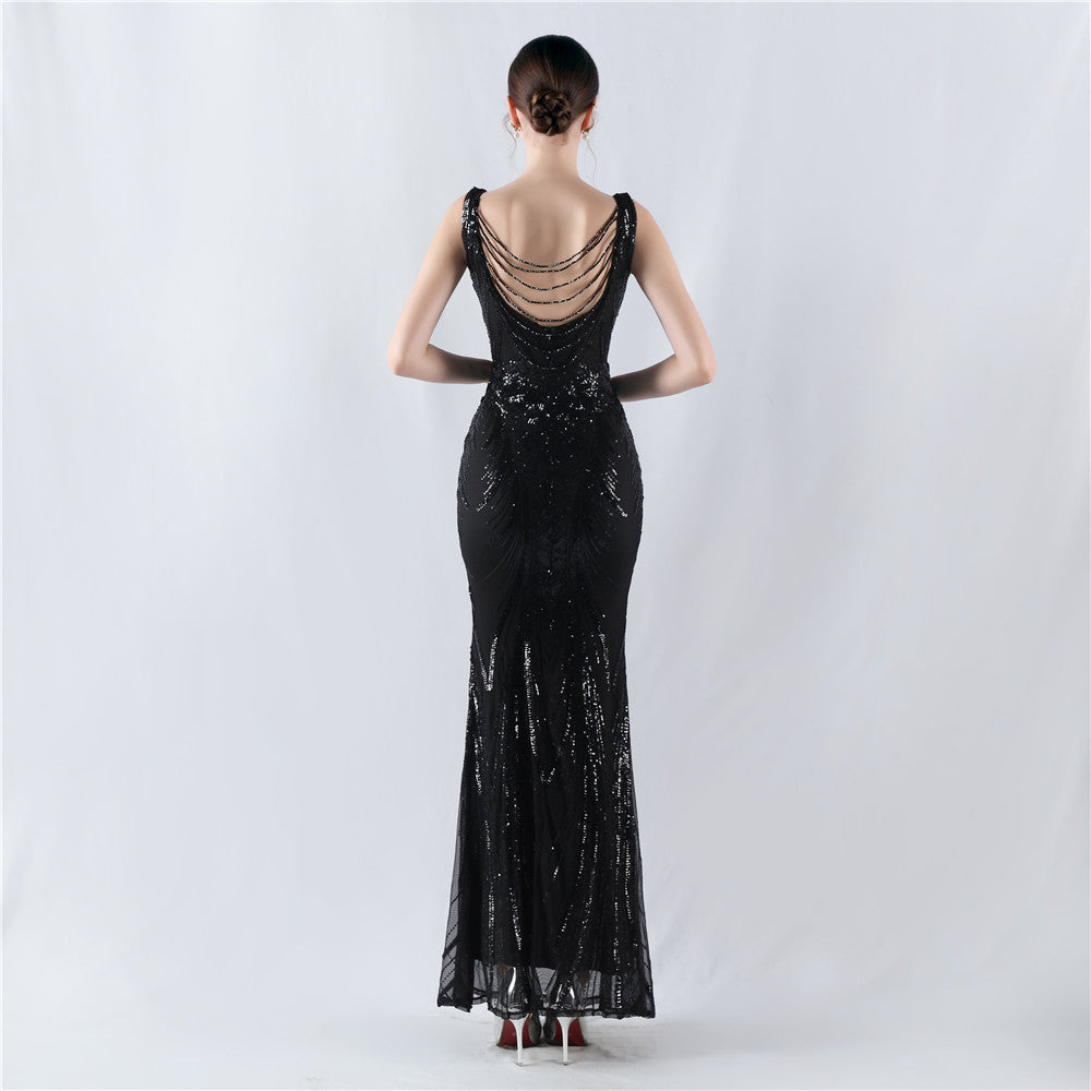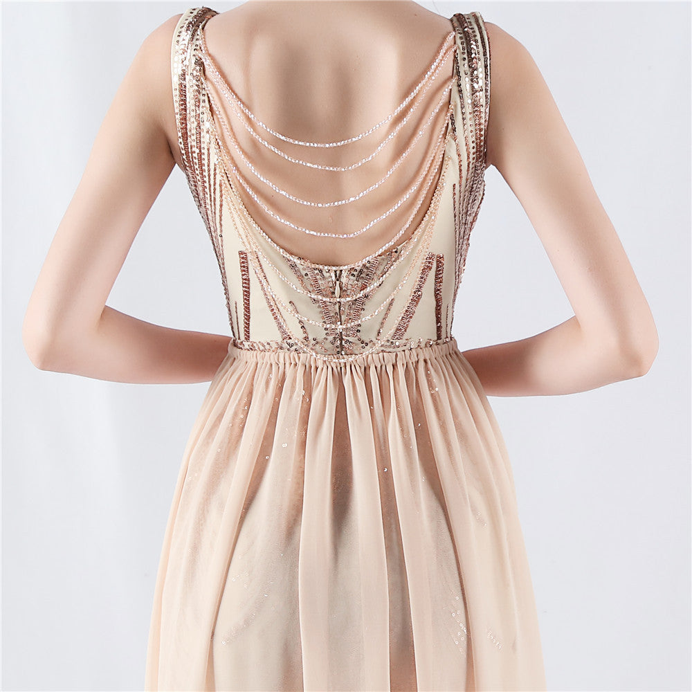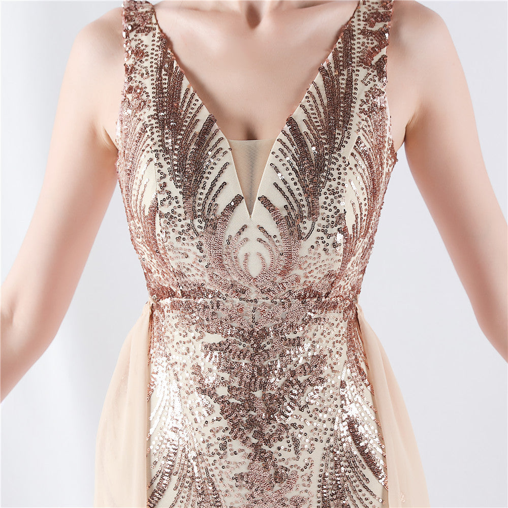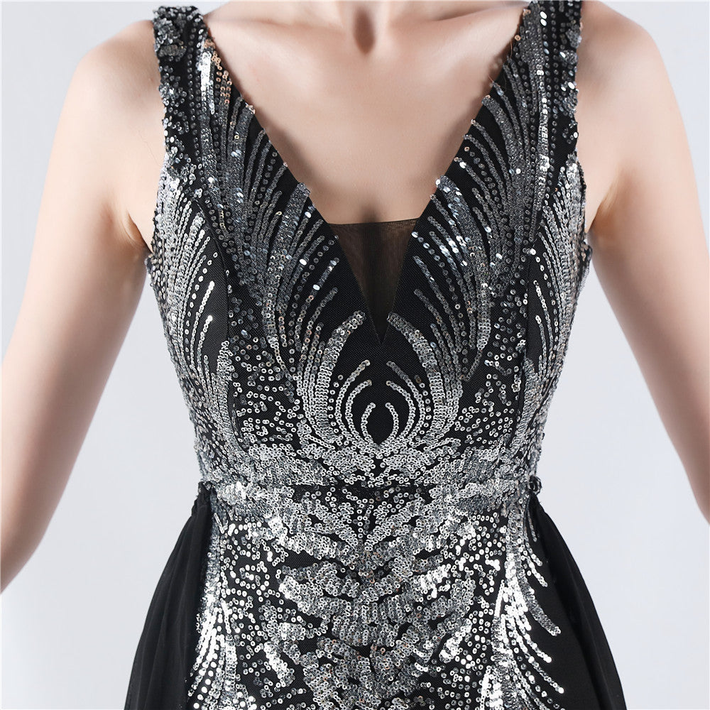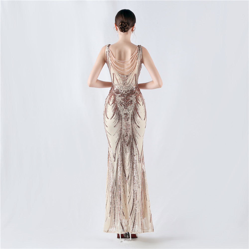 Placement Sequin Embroidery with Cape + Handcrafted Beading on the Back, with Built-in Chest Pads
