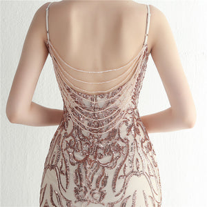 Sequins with Mesh and Beaded Embroidery, Built-in Chest Pads