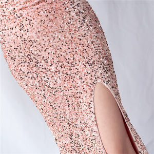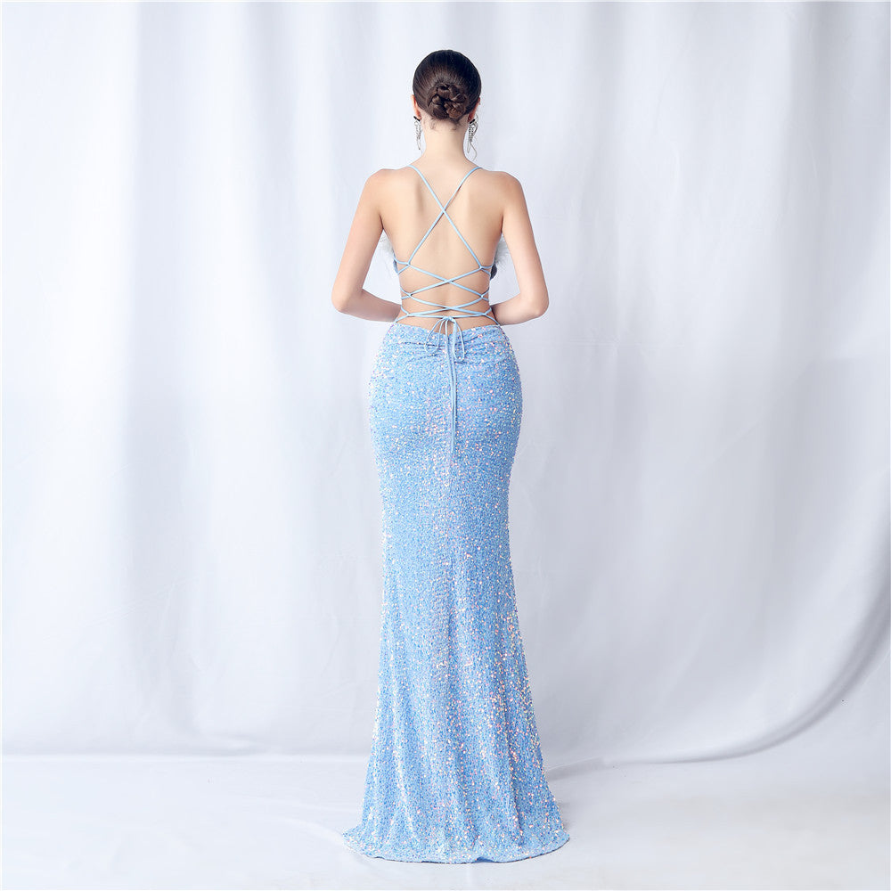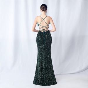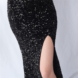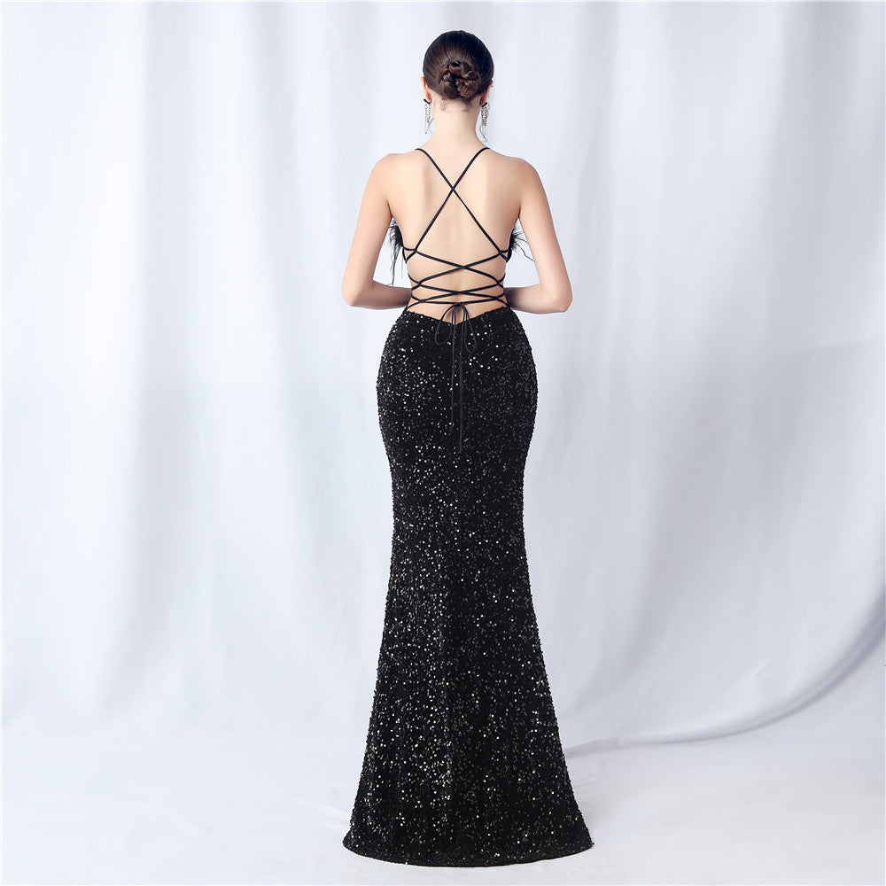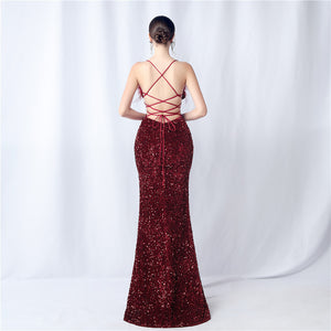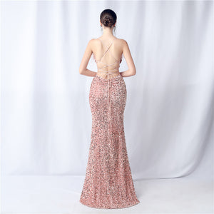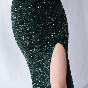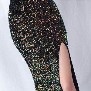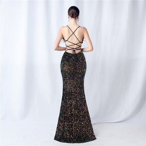 Velvet-backed hand-beaded formal dress