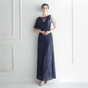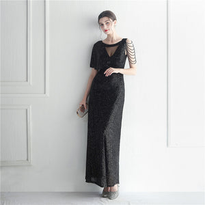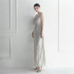 Ruffle Sleeve Mesh Formal Dress