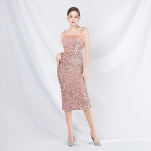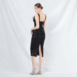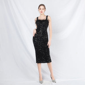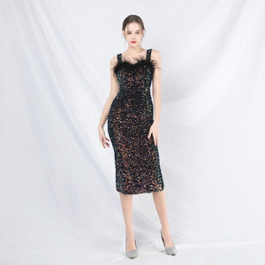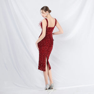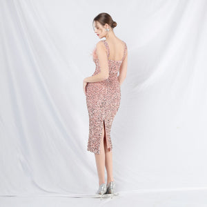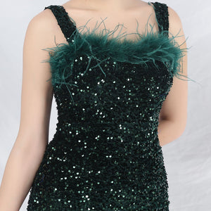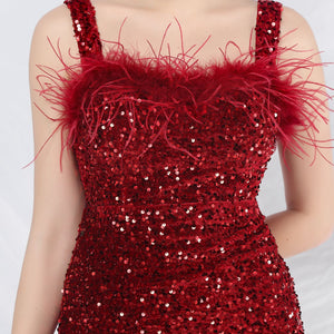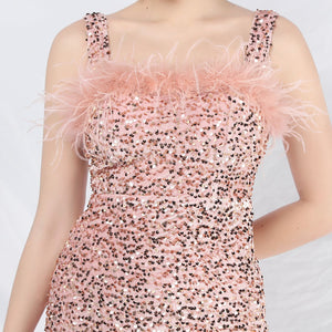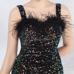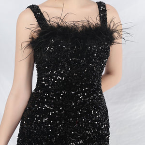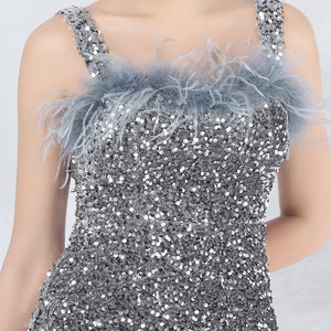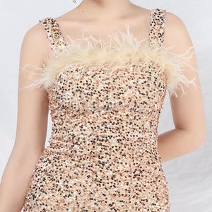 Sequins + Handcrafted Ostrich Featherwork, Built-in Chest Pads