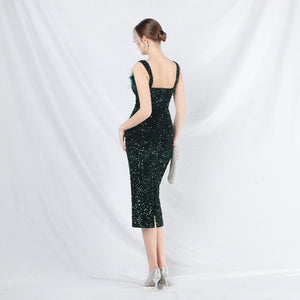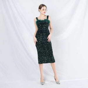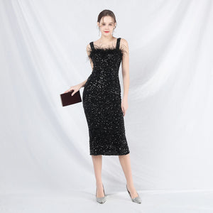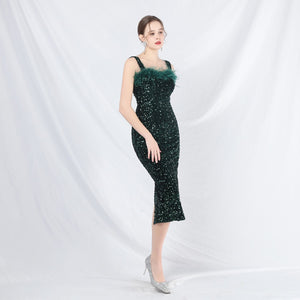 Ostrich Velvet Bottom Beaded Formal Dress